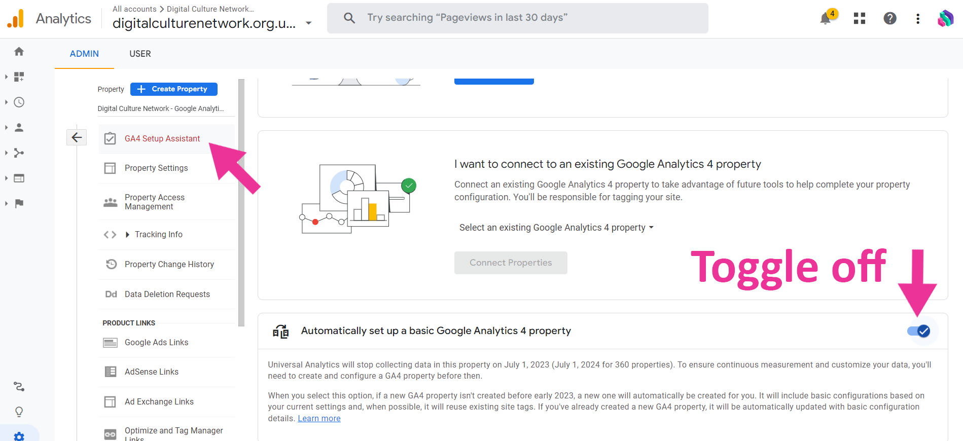 Google are threatening to create a new property for you if you don’t take action. This is all despite the fact may of us have actually already set up a new Google Analytics 4 property.